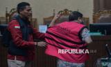 Terdakwa kasus dugaan suap vonis bebas terhadap Gregorius Ronald Tannur, Zarof Ricar diborgol usai menjalani sidang tuntutan di Pengadilan Tipikor, Jakarta, Rabu (28/5/2025). Dalam sidang tersebut, jaksa penuntut umum (JPU) menjatuhkan tuntutan kepada mantan pejabat Mahkamah Agung (MA) Zarof Ricar pidana penjara 20 tahun membayar denda Rp1 miliar, ibunda Ronald Tannur Meirizka Widjaja dengan pidana penjara empat tahun dan denda Rp750 juta dan pengacara Gregorius Ronald Tannur, Lisa Rachmat penjara selama 14 tahun dan membayar denda Rp750 juta. (FOTO : Republika/Thoudy Badai)