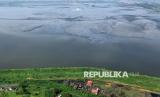 Foto udara kolam penampungan pusat semburan lumpur Lapindo di Porong, Sidoarjo, Jawa Timur, Kamis (29/5/2025). Bencana semburan lumpur panas Lapindo terjadi 19 tahun lalu tepatnya pada 29 Mei 2006. Akibar peristiwa itu, desa-desa tenggelam dan ribuan rumah rusak. Fasilitas pendidikan, tempat ibadah, dan infrastruktur lainnya juga hilang. Hingga saat ini semburan lumpur Lapindo masih aktif mengeluarkan lumpur panas dari dalam bumi. (FOTO : ANTARA FOTO/Umarul Faruq)