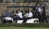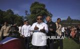 Presiden Prabowo Subianto seusai melakukan kunjungan bersama Presiden Prancis Emmanuel Macron di Candi Borobudur, Kabupaten Magelang, Jawa Tengah, Kamis (29/5/2025). Dalam kunjungan di candi yang dibangun pada 750-850 Masehi oleh Dinasti Syailendra dari Kerajaan Mataram Kuno tersebut keduanya menyampaikan sejumlah kesepakatan antarkedua negara. (FOTO : Yasuyoshi Chiba/Pool Photo via AP)