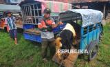 REPUBLIKA.CO.ID, KUDUS -- Penyedia jasa ojek kambing mengantarkan kambing dari pasar hewan Desa Jurang, Gebog, Kudus, Jawa Tengah, Kamis (15/6/2024).