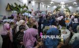 REPUBLIKA.CO.ID, TERNATE -- Tamu undangan memberikan uang pecahan Rp100 ribu dan Rp50 ribu kepada pengantin saat prosesi Saro-saro di Ternate, Maluku Utara, Ahad (1/6/2025).