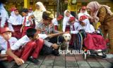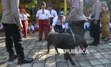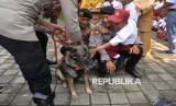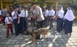 Polisi Satwa memperkenalkan anjing K9 kepada siswa Sekolah Luar Biasa Negeri (SLBN) Depok, Jawa Barat, Senin (2/6/2025). Direktorat Polisi Satwa (Ditpolsatwa) di bawah Korsabhara Baharkam Polri menyelenggarakan kegiatan edukasi bersama para siswa SLBN Depok, kegiatan ini merupakan bagain dari upaya untuk memperkenalkan peran Polisi Satwa kepada masyarakat sekaligus berkontribusi dalam pengembangan kemampuan sensorik dan motorik anak-anak berkebutuhan khusus. Dalam kegiatan ini, para siswa berkesempatan berinteraksi langsung dengan dua ekor kuda dan empat ekor anjing pelacak (K9) milik Ditpolsatwa. Siswa diajak untuk mengenal lebih dekat bagaimana satwa-satwa ini dilatih dan diberdayakan untuk mendukung berbagai tugas kepolisian, mulai dari pelacakan hingga pengamanan dalam berbagai operasi. (FOTO : Republika/Prayogi)
