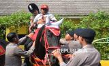 Polisi Satwa memperkenalkan kuda kepada siswa Sekolah Luar Biasa Negeri (SLBN) Depok, Jawa Barat, Senin (2/6/2025). Direktorat Polisi Satwa (Ditpolsatwa) di bawah Korsabhara Baharkam Polri menyelenggarakan kegiatan edukasi bersama para siswa SLBN Depok, kegiatan ini merupakan bagain dari upaya untuk memperkenalkan peran Polisi Satwa kepada masyarakat sekaligus berkontribusi dalam pengembangan kemampuan sensorik dan motorik anak-anak berkebutuhan khusus. Dalam kegiatan ini, para siswa berkesempatan berinteraksi langsung dengan dua ekor kuda dan empat ekor anjing pelacak (K9) milik Ditpolsatwa. Siswa diajak untuk mengenal lebih dekat bagaimana satwa-satwa ini dilatih dan diberdayakan untuk mendukung berbagai tugas kepolisian, mulai dari pelacakan hingga pengamanan dalam berbagai operasi. (FOTO : Republika/Prayogi)