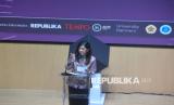 Menteri Komunikasi dan Digital (Komdigi) Meutya Hafid memberikan sambutan saat acara peluncuran Sahabat-Al terbaru di Jakarta, Senin (2/6/2025). PT GoTo Gojek Tokopedia Tbk (GoTo or GoTo Group) dan Indosat Ooredoo Hutchison (Indosat atau IOH) mempersembahkan terobosan terbaru dalam ekosistem Large Language Model (LLM) open-source Indonesia, melalui peluncuran Sahabat-Al dengan model berkapasitas 70 miliar parameter yang dilengkapi dengan layanan chat multibahasa. (FOTO : Republika/Prayogi)
