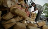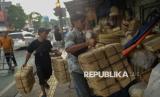 Pedagang besek bambu melayani pembeli di lapaknya di kawasan Jatinegara, Jakarta, Selasa (3/6/2025). Menjelang Hari Raya Idul Adha, pedagang besek bambu mengalami kenaikan penjualan hingga 40 kali lipatnya dibanding hari biasa. Sebelumnya penjualan besek dalam sehari menjual sebanyak 200 biji, kini mampu menjual hingga 7.000 biji dalam sehari. Penggunaan besek bambu tersebut digunakan untuk kemasan daging kurban yang ramah lingkungan menggantikan penggunaan plastik sekali pakai. Harga besek bambu tersebut dibanderol mulai dari Rp3.500 hingga Rp5.000 per biji tergantung ukuran. (FOTO : Republika/Thoudy Badai)