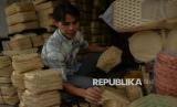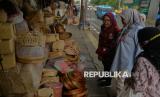 REPUBLIKA.CO.ID, JAKARTA -- Pedagang besek bambu melayani pembeli di lapaknya di kawasan Jatinegara, Jakarta, Selasa (3/6/2025).
