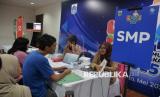Petugas membantu warga mencari informasi terkait Sistem Penerimaan Murid Baru (SPMB) di Posko Pelayanan SPMB di Kantor Dinas Pendidikan DKI Jakarta, Rabu (4/6/2025). Dinas Pendidikan Provinsi DKI Jakarta membuka posko pelayanan SPMB untuk membantu masyarakat mendapatkan informasi terkait seluruh proses seleksi penerimaan murid baru. Selain itu layanan ini bisa diakses secara daring ataupun luring dan gratis, baik melalui telepon, WhatsApp, maupun layanan langsung di posko-posko yang telah ditentukan dan tersebar di seluruh wilayah administratif Jakarta. Dengan kehadiran posko Layanan SPMB ini, diharapkan bisa membuat proses seleksi masuk sekolah berjalan lebih mudah dan transparan. (FOTO : Republika/Prayogi)