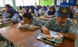 REPUBLIKA.CO.ID, PADANG -- Sejumlah siswa menikmati makan siang dari program Makan Bergizi Gratis (MBG) di SMPN 8 Padang, Sumatera Barat, Rabu (4/6/2025).