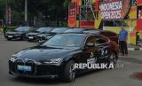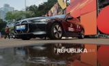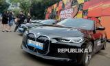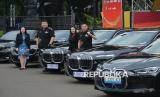 Mobil BMW dipajang saat serah terima kendaraan BMW kepada PBSI untuk Ajang Kapal Api Indonesia Open 2025 di Istora Senayan, Gelora Bung Karno, Jakarta, Selasa (3/6/2025). BMW Indonesia bersama dengan PBSI melakukan serah terima 15 kendaraan BMW yang akan digunakan sebagai transportasi untuk para VIP dan juga atlet untuk ajang Kapal Api Indonesia Open 2025 dimana hal ini menegaskan kolaborasi strategis antara BMW Indonesia sebagai Official Mobility Partner dari PBSI, yang mana kerjasama ini sudah berjalan sejak 2021. (FOTO : Dok Republika)