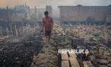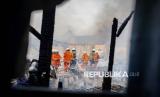 REPUBLIKA.CO.ID, JAKARTA -- Petugas pemadam kebakaran memadamkan sisa api yang membakar rumah warga di Kapuk Muara, Jakarta, Jumat (6/6/2025).