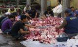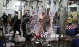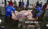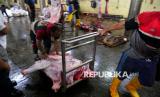 Kesibukan petugas Rumah Potong Hewan (RPH) mengurus daging kurban di RPH Ciroyom, Kota Bandung, Sabtu (7/6). Pemkot Bandung mengimbau warga agar memanfaatkan layanan RPH untuk pemotongan hewan kurban. Selain juru sembelih halal di RPH telah memiliki kompetensi dan tersertifikasi, juga bisa mencegah timbunan sampah pasca Idul Adha. (FOTO : Edi Yusuf)