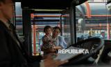 Penumpang menaiki bus Transjakarta P11 rute TransJabodetabek Blok M-Bogor di Terminal Blok M, Jakarta, Senin (9/6/2025). Gubernur DKI Jakarta Pramono Anung resmi membuka rute baru transJabodetabek Blok M-Bogor dengan kode P11 untuk memenuhi kebutuhan akses transportasi warga Bogor dan Jakarta. Rute Blok M-Bogor ini memiliki panjang lintasan 113,3 kilometer dengan 20 titik perhentian bus yang terdiri dari 9 titik di wilayah DKI Jakarta dan 11 titik di luar wilayah DKI Jakarta dengan estimasi waktu tempuh sekitar 90 menit sampai 110 menit saat lalu lintas padat. Keberadaan rute baru diharapkan terciptanya konektivitas antardaerah penyangga serta dapat menekan angka penggunaan transportasi pribadi sehingga dapat menurunkan angka kemacetan. (FOTO : Republika/Thoudy Badai)