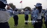 REPUBLIKA.CO.ID, DEPOK -- Sejumlah siswa mengikuti upacara pelepasan program Pembinaan Karakter dan Bela Negara di Markas Divisi Infanteri 1 Kostrad, Cilodong, Kota Depok, Jawa Barat, Senin (9/6/2025).