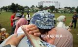 Orang tua memeluk anaknya usai mengikuti program Pembinaan Karakter dan Bela Negara di Markas Divisi Infanteri 1 Kostrad, Cilodong, Kota Depok, Jawa Barat, Senin (9/6/2025). Pemkot Depok melalui Badan Kesatuan Bangsa dan Politik (Bakesbangpol) menutup program Pembinaan Karakter dan Bela Negara untuk remaja berusia 13-15 tahun dan melepas sebanyak 98 siswa yang telah dilaksanakan dari tanggal 31 Mei hingga 9 Juni 2025. (FOTO : ANTARA FOTO/Yulius Satria Wijaya)