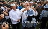 Gubernur Jawa Barat Dedi Mulyadi (tengah) didampingi Waki Kota Depok Supian Suri (kiri) berbincang dengan siswa saat menghadiri pelepasan peserta program Pembinaan Karakter dan Bela Negara di Markas Divisi Infanteri 1 Kostrad, Cilodong, Kota Depok, Jawa Barat, Senin (9/6/2025). Dedi Mulyadi berencana memperluas cakupan program pendidikan karakter yang selama ini menyasar siswa bermasalah, dan kedepannya program ini juga akan menjangkau warga dewasa yang kerap meresahkan masyarakat. (FOTO : ANTARA FOTO/Yulius Satria Wijaya)