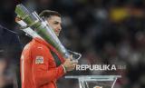 REPUBLIKA.CO.ID, MUNICH -- Cristiano Ronaldo memegang trofi setelah memenangkan kejuaraan UEFA Nations League di Allianz Arena, Munich, Jerman, Senin (9/6/2025) dini hari WIB.