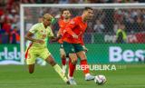Pemain Portugal Cristiano Ronaldo berebut bola dengan pemain Spanyol Lamine Yamal pada pertandingan final kejuaraan UEFA Nations League di Allianz Arena, Munich, Jerman, Senin (9/6/2025) dini hari WIB. Portugal meraih gelar kedua di UEFA Nations League dengan mengalahkan juara bertahan Spanyol. Selecao das Quinas menang 5-3 melalui adu penalti. Pada pertandingan itu Ronaldo mencetak satu gol di menit ke-61. (FOTO : EPA-EFE/MIGUEL A. LOPES)