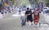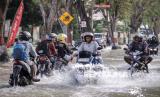 REPUBLIKA.CO.ID, GRESIK -- Pengendara sepeda motor melintasi banjir di Jalan Raya Benjeng, Kecamatan Benjeng, Gresik, Jawa Timur, Selasa (10/6/2025).