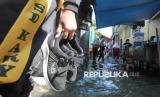 Tingginya pasang air laut menyebabkan kampung padat penduduk tersebut tergenang banjir rob dengan kedalaman bervariasi mulai 15-25 centimeter.