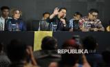 REPUBLIKA.CO.ID, JAKARTA -- Ketua Umum PSSI Erick Thohir bersama Ketua Steering Committee Piala Presiden 2025 Maruarar Sirait dan Ketua Organizing Commitee (OC) Piala Presiden Harsiwi Achmad menyampaikan keterangan terkait gelaran Piala Presiden 2025 di Menara Danareksa, Jakarta, Jumat (13/6/2025).