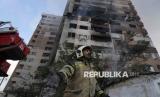REPUBLIKA.CO.ID, TEHERAN -- Pemadam kebakaran bersiaga di dekat apartemen yang rusak akibat serangan udara Israel di Teheran, Iran, Jumat, (13/6/2025).