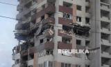 Bangunan apartemen rusak akibat serangan udara Israel di Teheran, Iran, Jumat, (13/6/2025). Militer Israel melakukan serangan udara ke Iran. Sejumlah bangunan dan kendaraan milik warga sipil Iran rusak akibat serangan udara Israel. Ledakan dilaporkan terdengar di Teheran sementara sirine meraung-raung di seantero Israel. Kantor Berita Iran Nour mendengar suara ledakan dahsyat di kawasan Mahallati, timur laut ibu kota, Teheran. Koresponden Aljazirah di Teheran melaporkan mendengar enam ledakan besar di ibu kota Iran pada Jumat pagi. (FOTO : AP Photo/Vahid Salemi)