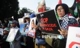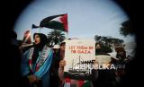 REPUBLIKA.CO.ID, JAKARTA -- Sejumlah umat Muslim menggelar unjuk rasa solidaritas untuk Gaza di depan Kedutaan Besar Amerika Serikat, Jakarta, Jumat (13/6/2025).