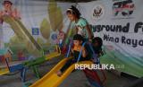 Anak-anak pengungsi etnis Rohingya bermain di tempat penampungan sementara Mina Raya, Padang Tiji, Kabupaten Pidie, Aceh, Jumat (13/6/2025). Sebanyak 62 orang dari 576 orang pengungsi etnik Rohingya asal Myanmar yang terdampar sejak akhir 2022 masih menempati penampungan sementara Mina Raya, Pidie dan berharap dapat dipindahkan ke negara ketiga atau tujuan para imigran asal Myanmar itu. (FOTO : ANTARA FOTO/Irwansyah Putra)