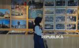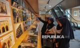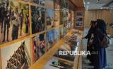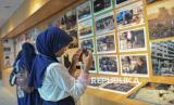 Pengunjung mengamati karya foto yang dipamerkan di Perpustakaan Jakarta HB Jassin yang mengangkat tema Semangat Gaza untuk Bela Masjid Al-Aqsa di Taman Ismail Marzuki, Jakarta, Jumat (13/6/2025). Pameran yang digagas oleh Gaza Working Group bersama Yayasan Persahabatan dan Studi Peradaban ersebut menampilkan foto-foto semangat perlawanan dan ketabahan rakyat Gaza dalam membela tanah air dan Masjid Al-Aqsa. (FOTO : Republika/Thoudy Badai)