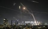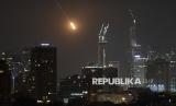 Sistem pertahanan udara Israel Iron Dome berusaha mencegat serangan rudal Iran di Tel Aviv, Israel, Sabtu (14/6/2025) dinihari. Iran membalas serangan Israel dengan meluncurkan rudal-rudal balistik ke Tel Aviv. Militer Israel (IDF) lewat unggahan di media sosial mengatakan semua wilayah Israel sedang diserang. (FOTO : AP Photo/Leo Correa)