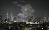 Asap membumbung setelah terjadi ledakan yang disebabkan oleh serangan rudal Iran di Tel Aviv, Israel, Sabtu (14/6/2025) dinihari. Iran membalas serangan Israel dengan meluncurkan rudal-rudal balistik ke Tel Aviv. Militer Israel (IDF) lewat unggahan di media sosial mengatakan semua wilayah Israel sedang diserang. (FOTO : AP Photo/Leo Correa)