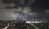 Sistem pertahanan udara Israel berusaha mencegat serangan rudal Iran, di atas Tel Aviv, Israel, Ahad (15/6/2025). Channel 13 Israel melaporkan, serangan Iran menyebabkan kehancuran yang belum pernah terjadi sebelumnya di wilayah Tel Aviv, dengan puluhan bangunan rusak akibat rudal Iran atau pecahan peluru kendali. (FOTO : AP Photo/Oded Balilty)