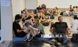 Warga Israel berlindung di ruang bunker perlindungan saat Iran menembakkan rudal serangan balasan ke Tel Aviv, Israel, Ahad (15/6/2025). Channel 13 Israel melaporkan, serangan Iran menyebabkan kehancuran yang belum pernah terjadi sebelumnya di wilayah Tel Aviv, dengan puluhan bangunan rusak akibat rudal Iran atau pecahan peluru kendali. (FOTO : AP Photo/Maya Alleruzzo)