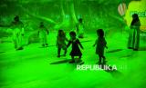 Anak-anak berada di Studio Imersif Perpustakaan Jakarta dan Pusat Dokumen Sastra HB Jassin, Taman Ismail Marzuki (TIM), Jakarta, Ahad (15/6/2025). Studio Imersif tersebut dibuka untuk umum secara gratis pada hari Selasa, Kamis, Sabtu dan Ahad dengan empat sesi waktu yang bertujuan untuk memberikan layanan literasi kepada masyarakat melalui perpaduan antara teknologi digital, artificial intelligence (AI), arsip digital, ruang eksplorasi kreatif dan pengalaman interaktif. (FOTO : Republika/Prayogi)