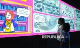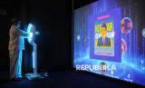 Seorang anak berada di Studio Imersif Perpustakaan Jakarta dan Pusat Dokumen Sastra HB Jassin, Taman Ismail Marzuki (TIM), Jakarta, Ahad (15/6/2025). Studio Imersif tersebut dibuka untuk umum secara gratis pada hari Selasa, Kamis, Sabtu dan Ahad dengan empat sesi waktu yang bertujuan untuk memberikan layanan literasi kepada masyarakat melalui perpaduan antara teknologi digital, artificial intelligence (AI), arsip digital, ruang eksplorasi kreatif dan pengalaman interaktif. (FOTO : Republika/Prayogi)