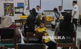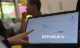 Orang tua murid melakukan proses pendaftaran Sistem Penerimaan Murid Baru (SPMB) 2025 secara daring di SDN Pejaten Barat 01, Jakarta, Senin (16/6/2025). Pelaksanaan pendaftaran SPMB digelar secara daring di seluruh wilayah DKI Jakarta mulai hari ini tanggal 16 Juni hingga 20 Juni untuk jalur domisili, 16 Juni hingga 4 Juli untuk jalur mutasi, jalur afirmasi prioritas pertama khusus anak disabilitas tanggal 16-20 Juni dan jalur afirmasi prioritas kedua untuk anak pemegang Kartu Anak Jakarta, anak pekerja dan anak mitra Transjakarta tanggal 23-28 Juni. Sejumlah orang tua murid mengaku mengalami kesulitan saat melakuan pendaftaran secara daring karena terkendala jaringan dan prosedur syarat pendaftaran. Meski demikian, pihak sekolah tetap membuka layanan SPMB secara luring untuk membantu dan mengarahkan masyarakat dalam proses pendaftaran SPMB tersebut. (FOTO : Republika/Thoudy Badai)