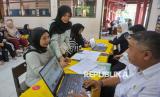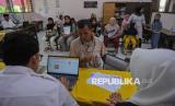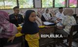 Tenaga pendidik membantu orang tua murid saat proses pendaftaran Sistem Penerimaan Murid Baru (SPMB) 2025 di SDN Pejaten Barat 01, Jakarta, Senin (16/6/2025). Pelaksanaan pendaftaran SPMB digelar secara daring di seluruh wilayah DKI Jakarta mulai hari ini tanggal 16 Juni hingga 20 Juni untuk jalur domisili, 16 Juni hingga 4 Juli untuk jalur mutasi, jalur afirmasi prioritas pertama khusus anak disabilitas tanggal 16-20 Juni dan jalur afirmasi prioritas kedua untuk anak pemegang Kartu Anak Jakarta, anak pekerja dan anak mitra Transjakarta tanggal 23-28 Juni. Sejumlah orang tua murid mengaku mengalami kesulitan saat melakuan pendaftaran secara daring karena terkendala jaringan dan prosedur syarat pendaftaran. Meski demikian, pihak sekolah tetap membuka layanan SPMB secara luring untuk membantu dan mengarahkan masyarakat dalam proses pendaftaran SPMB tersebut. (FOTO : Republika/Thoudy Badai)