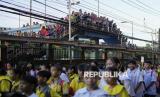 REPUBLIKA.CO.ID, QUEZON -- Orang tua dan wali murid menunggu dari luar gerbang sekolah saat mengantar anaknya selama pembukaan tahun ajaran baru di sebuah Sekolah Dasar di kota Quezon, Filipina, Senin (16/6/2025).
