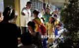 Siswa bersiap mengikuti kegiatan belajar selama pembukaan tahun ajaran baru di sebuah Sekolah Dasar di kota Quezon, Filipina, Senin (16/6/2025). Filipina memulai tahun ajaran baru sekolah pada Senin (16/6/2025). Orang tua siswa tampak antusias mengantar anaknya hingga ke depan gerbang sekolah. Mereka rela menunggu dibalik pagar sekolah untuk melihat anaknya memulai aktivitas belajar di sekolah. (FOTO : AP Photo/Aaron Favila)