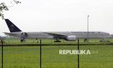 REPUBLIKA.CO.ID, DELI SERDANG -- Pesawat Saudi Airlines nomor penerbangan SV-5276 berada di landasan usai mendarat darurat di Bandara Internasional Kualanamu, Kabupaten Deli Serdang, Sumatera Utara, Selasa (17/6/2025).