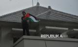 Massa aksi menggelar aksi solidaritas untuk Palestina di depan kantor Kedutaan Besar Mesir untuk Indonesia di Jakarta, Selasa (17/6/2025). Aksi tersebut sebagai bentuk solidaritas terhadap warga Palestina sekaligus mendesak pemerintah Mesir membuka jalur perbatasan Rafah untuk menyalurkan bantuan kemanusiaan bagi warga Palestina. (FOTO : Republika/Thoudy Badai)