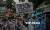 Hujan Tak Surutkan Semangat Peserta Aksi Solidaritas Palestina di Kedubes Mesir