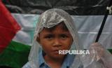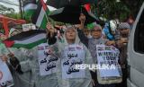 Peserta aksi meminta Mesir membuka jalur perbatasan Rafah untuk bantuan kemanusiaan.