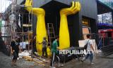 REPUBLIKA.CO.ID, JAKARTA -- Pekerja menyelesaikan pembangunan gerai yang akan berpartisipasi dalam Jakarta Fair 2025 di JIExpo, Kemayoran, Jakarta, Rabu (18/6/2025).
