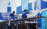 Pekerja menyelesaikan pembangunan gerai yang akan berpartisipasi dalam Jakarta Fair 2025 di JIExpo, Kemayoran, Jakarta, Rabu (18/6/2025). Jakarta Fair 2025 atau Pekan Raya Jakarta (PRJ) akan berlangsung pada 19 Juni hingga 13 Juli 2025 dalam rangka memperingati HUT ke-498 Jakarta. Pameran terbesar, terlama, dan terlengkap di Asia Tenggara ini akan diikuti oleh 2.550 peserta, terdiri atas komposisi 55 persen perusahaan swasta dan 45 persen perusahaan skala usaha mikro, kecil, dan menengah (UMKM). Jakarta Fair Kemayoran 2025 mengusung tema Jakarta Fair Kemayoran Mendukung Indonesia Maju melalui Inovasi dan Karya Bangsa Berkelanjutan. (FOTO : Republika/Prayogi)