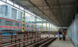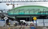 REPUBLIKA.CO.ID, LEBAK -- Pekerja berjalan melintasi akses jembatan penyeberangan di Stasiun Rangkasbitung Ultimate, Lebak, Banten, Rabu (18/6/2025).