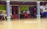 Warga duduk di depan rumahnya yang tergenang banjir di Desa Tanggirejo, Tegowanu, Grobogan, Jawa Tengah, Rabu (18/6/2025). Menurut Badan Penanggulangan Bencana Daerah (BPBD) setempat, banjir akibat curah hujan tinggi yang menyebabkan melimpasnya air dari Sungai Renggong itu merendam 100 rumah, dua mushola dan satu sekolahan serta sebanyak 110 Kepala Keluarga mengungsi. (FOTO : ANTARA FOTO/Yusuf Nugroho)