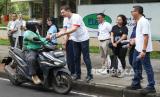 Pengemudi ojek daring yang melintas di sekitar gedung AXA Tower Jakarta menerima paket P3K gratis di sela kegiatan AXA Week for Good di Jakarta, Rabu (18/6/2025). Mitra pengemudi juga menerima pemeriksaan mata dan kesehatan gratis serta paket P3K dari 5 entitas AXA di Indonesia, yaitu AXA Mandiri, AXA Financial Indonesia, AXA Insurance Indonesia, AXA Investment Managers Select Indonesia dan AXA Group Operations Indonesia. Selain kegiatan dengan mitra pengemudi Grab, AXA Week for Good 2025 juga mengadakan donor darah dan pelatihan pertolongan pertama oleh Palang Merah Indonesia (PMI) serta distribusi 700 paket P3K gratis bagi pengendara sepeda motor yang melintas di sekitar gedung AXA Tower di Jakarta. (FOTO : Dok Republika)