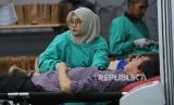 Warga mengikuti donor darah saat kegiatan AXA Week for Good, di Jakarta, Rabu (18/6/2025). Mitra pengemudi juga menerima pemeriksaan mata dan kesehatan gratis serta paket P3K dari 5 entitas AXA di Indonesia, yaitu AXA Mandiri, AXA Financial Indonesia, AXA Insurance Indonesia, AXA Investment Managers Select Indonesia dan AXA Group Operations Indonesia. Selain kegiatan dengan mitra pengemudi Grab, AXA Week for Good 2025 juga mengadakan donor darah dan pelatihan pertolongan pertama oleh Palang Merah Indonesia (PMI) serta distribusi 700 paket P3K gratis bagi pengendara sepeda motor yang melintas di sekitar gedung AXA Tower di Jakarta. (FOTO : Dok Republika)