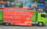 REPUBLIKA.CO.ID, KUDUS -- Sejumlah sopir truk yang tergabung dalam Gerakan Sopir Jawa Tengah (GSJT) mengikuti aksi mogok kerja dan tolak aturan Over Dimension Over Load (ODOL) di Terminal Jati, Kudus, Jawa Tengah, Kamis (19/6/2025).